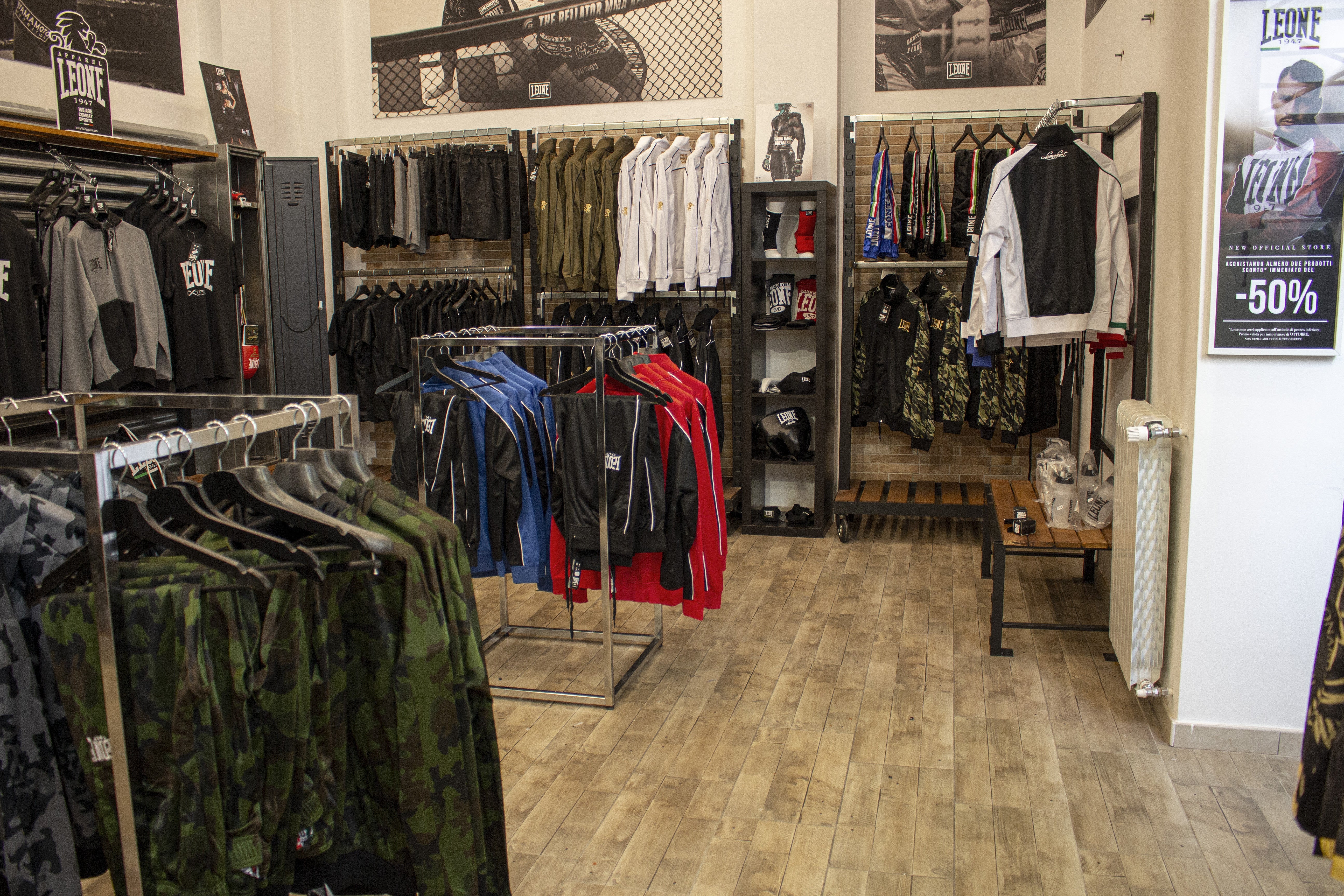 Always the site of the only Leone1947 single-brand store, today the official store in Via Crema 11 is expanding and renewing, tripling its exhibition space. Streetwear and technical clothing, sports equipment and protections for every ring sport.
