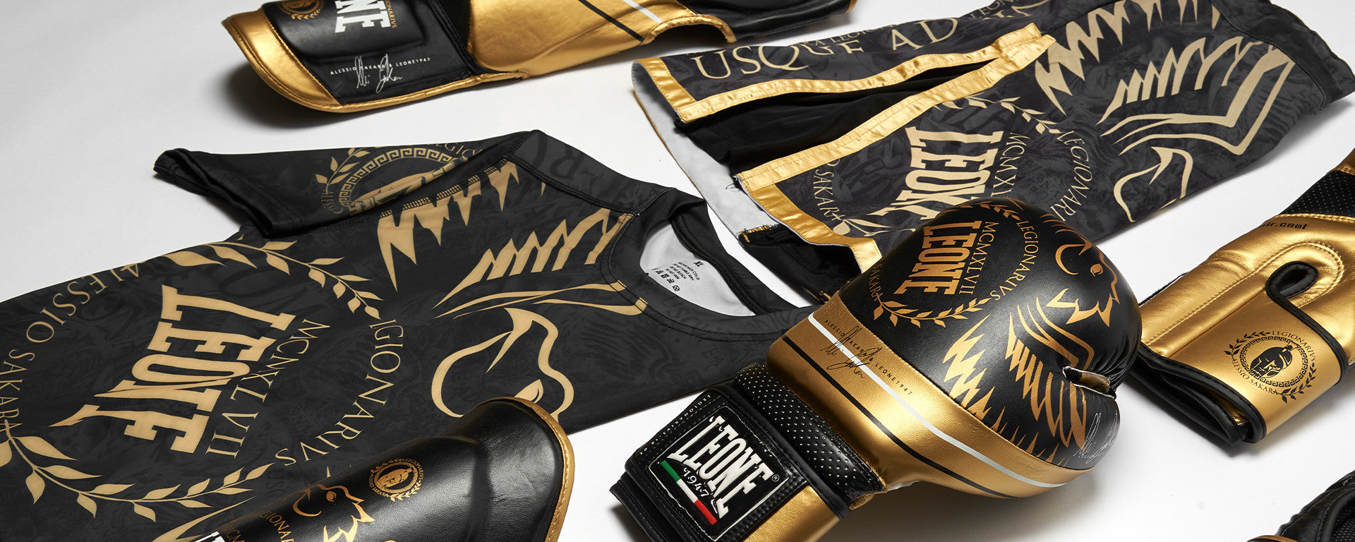 Following the great success of the Legionarivs II shorts, the company decides to develop an entire kit dedicated to the figther Alessio Sakara with its internal design laboratory LABoxe. Between 2016 and 2019, MMA gloves, training gloves, shin guards for sparring and the rashguard combined with shorts are presented to the public. Some of the articles also in the special edition in "Pompeian red"..