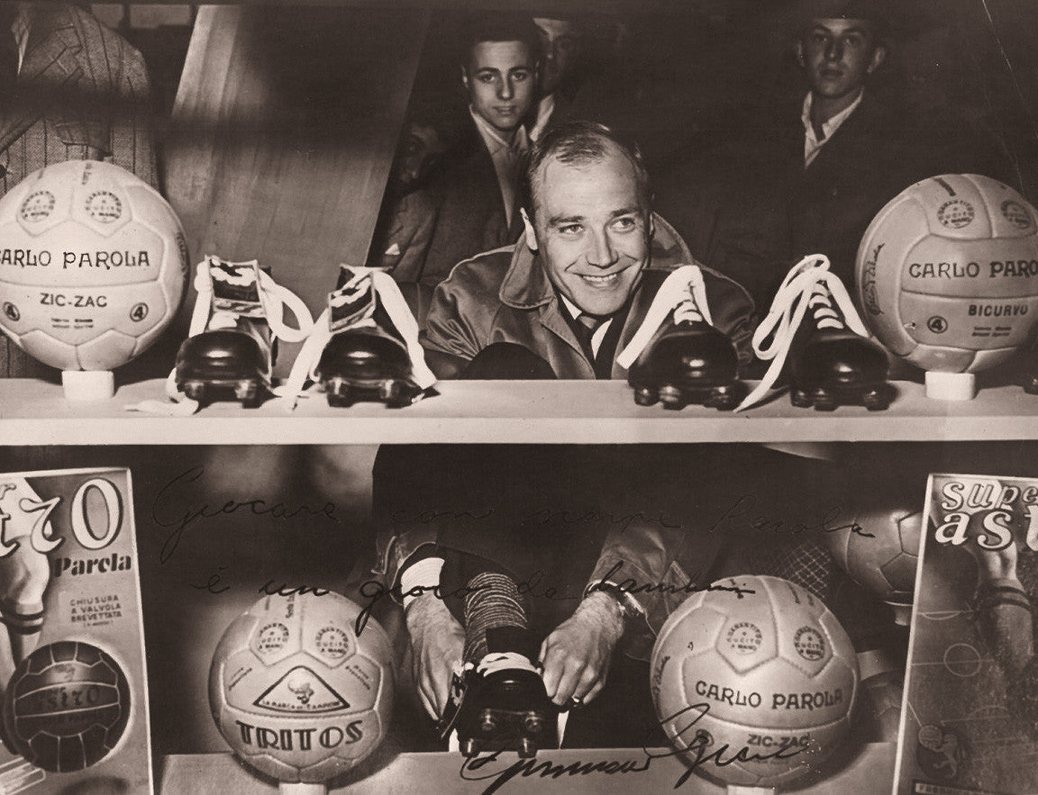 Below, instead, the original dedication of Nils Liedholm, a popular AC Milan footballer and coach in the 1960s. Leone football boots were highly appreciated for their unquestionable quality.