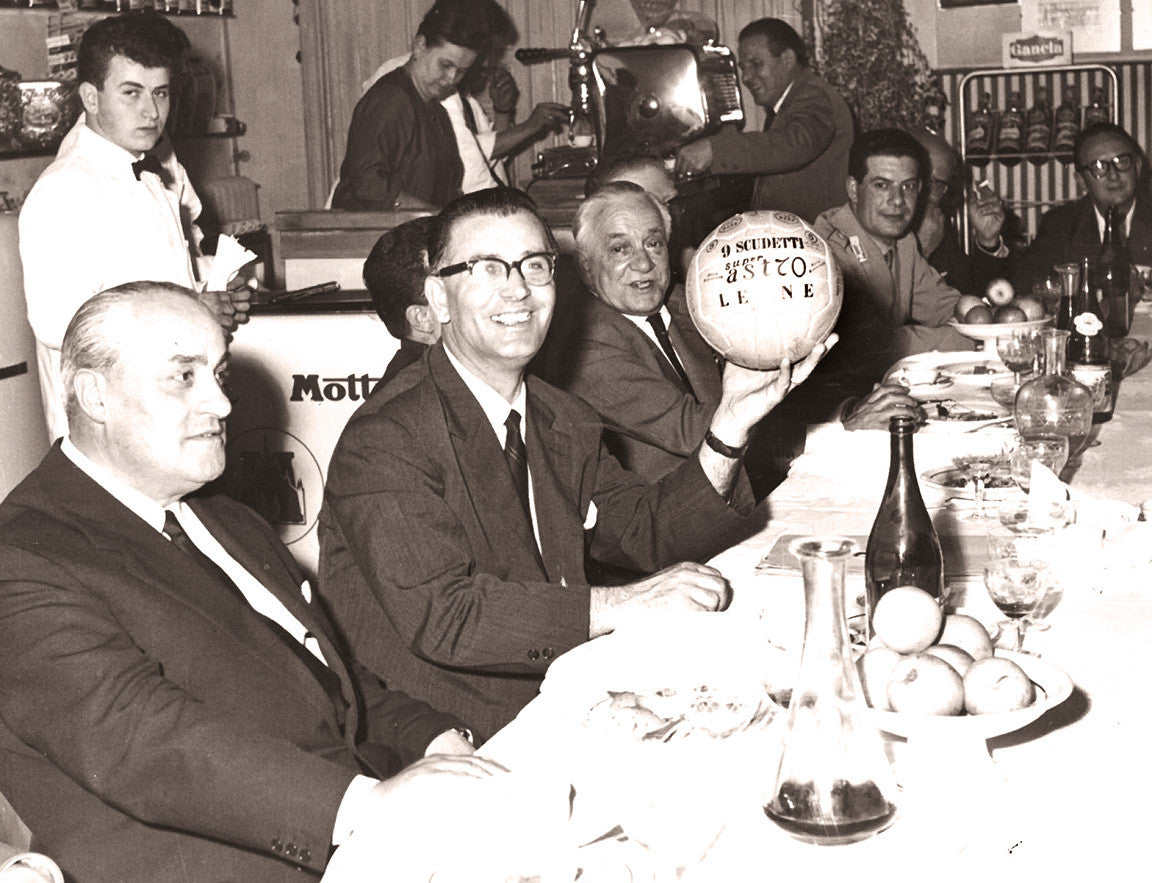 Success came quickly thanks to the intuition of Orlando who, by combining his production experience with the technical knowledge of the Juventus professional footballer Carlo Parola, created the famous 18-section ball which, thanks to its revolutionary and innovative characteristics, immediately became the most used by the best Serie A teams, such as Milan, Inter, Juventus and Fiorentina. Champion of the caliber of Angelillo and Parola and subsequently of Antognoni, Tardelli and Scirea are among the prestigious testimonials of LEONE SPORT football products. Thus was born the LEONE "PAROLA" soccer ball, entirely handmade with the extraordinary craftsmanship typical of Made in Italy, together with the equally popular soccer shoes.