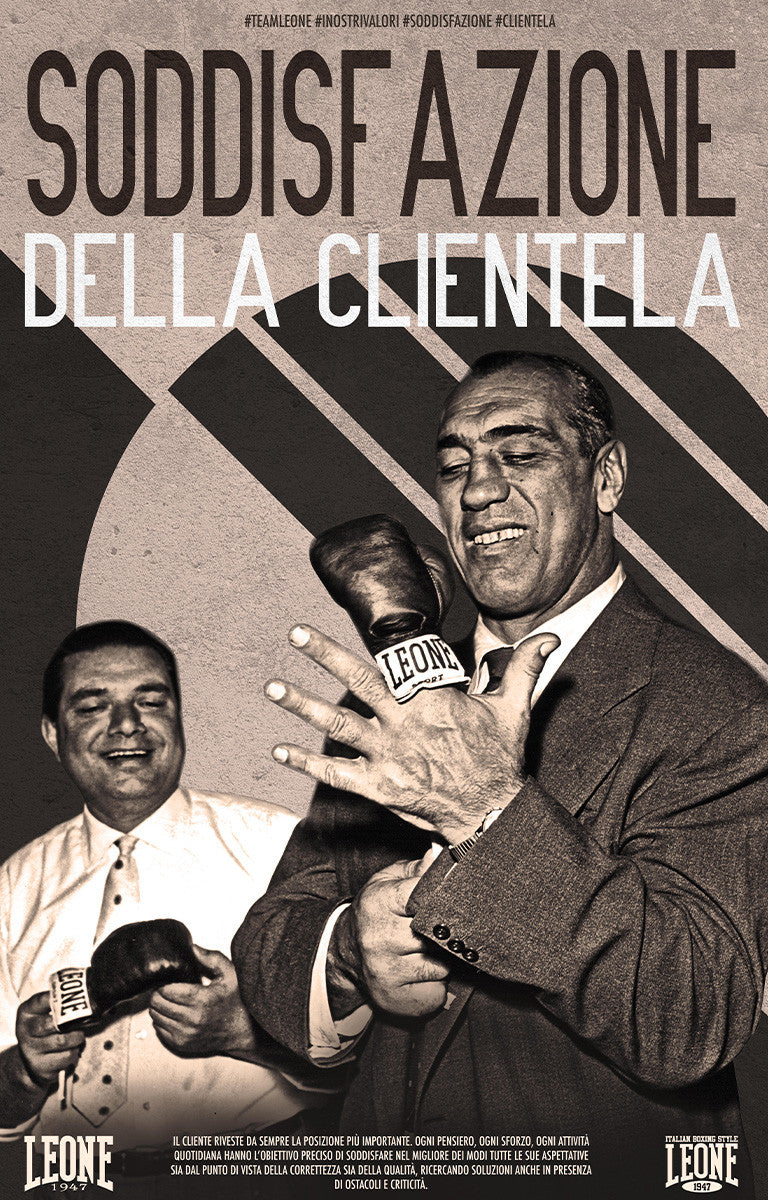 Character, passion and determination are the basis of every great sporting result. This is how this story began, with courage and enthusiasm when in 1947, after years of experience in the leather goods sector, Cav. Orlando Leone founded LEONE 1947. The love of boxing led the founder to produce specific articles for this sport and the company quickly became a market leader.